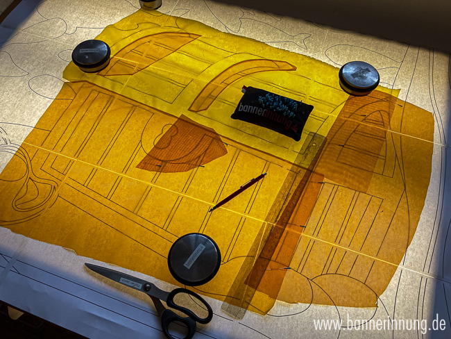 Zum Schluss entstehen die Stabtunnel. Hier wurde das Motiv jeweils horizontal erweitert, damit man die Stabtaschen später von der Vorderseite gar nicht wahrnimmt. Hier muss alles passen!