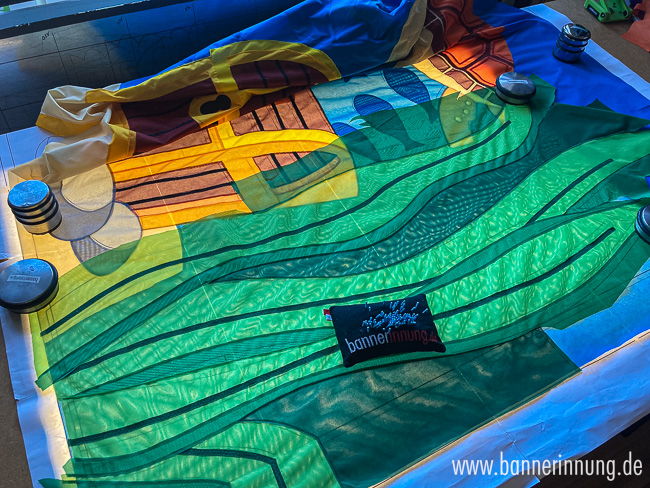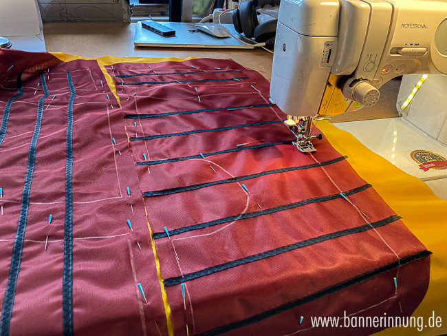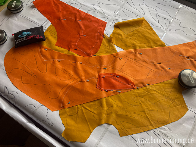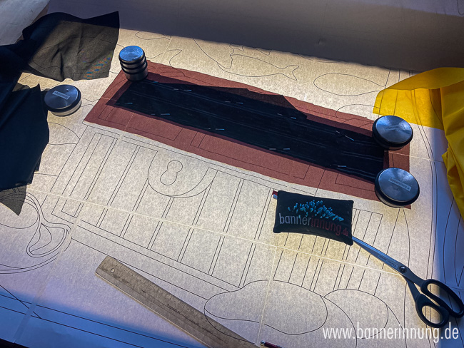 Zum Schluss entstehen die Stabtunnel. Hier wurde das Motiv jeweils horizontal erweitert, damit man die Stabtaschen später von der Vorderseite gar nicht wahrnimmt. Hier muss alles passen!